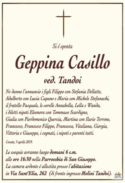 Il rito funebre è stato celebrato il giorno 6 aprile 2019