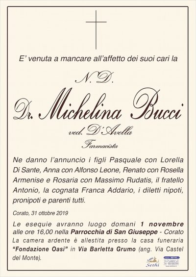 Il rito funebre è stato celebrato il giorno 1 novembre 2019