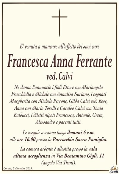 per la scomparsa della cara