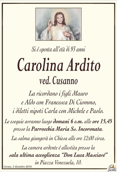 Il rito funebre è stato celebrato il giorno 6 dicembre 2019