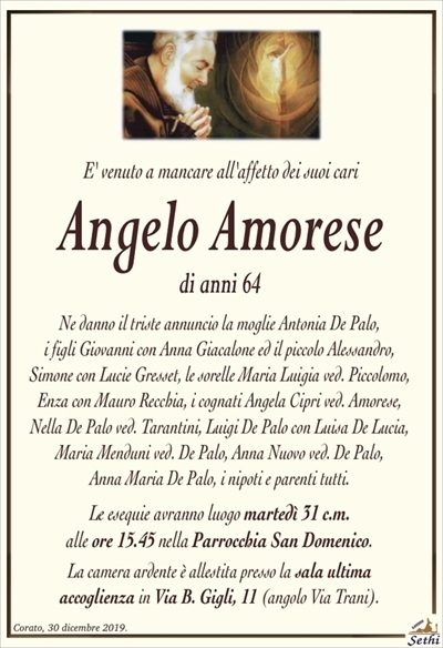 Il rito funebre è stato celebrato il giorno 31 dicembre 2019