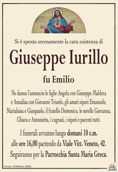 Il rito funebre è stato celebrato il giorno 10 febbraio 2020