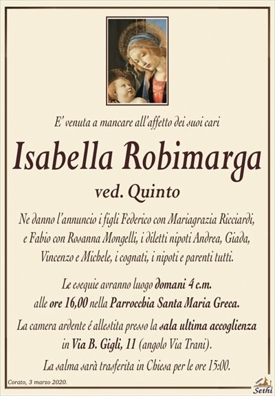 Il rito funebre è stato celebrato il giorno 4 marzo 2020