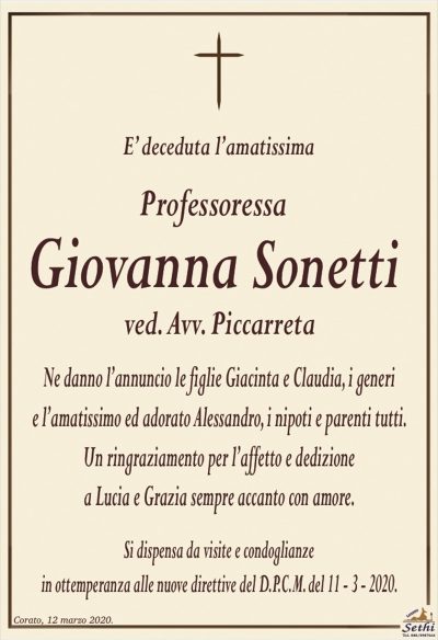 Professoressa Giovanna Sonetti ved. Avv. Piccarreta