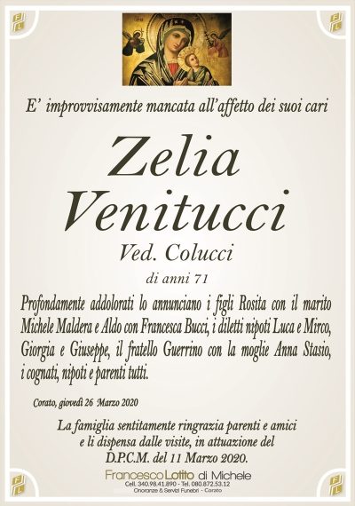 per la scomparsa della cara congiunta
