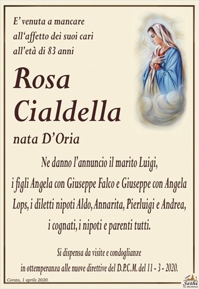 Il rito funebre è stato celebrato il giorno 2 aprile 2020