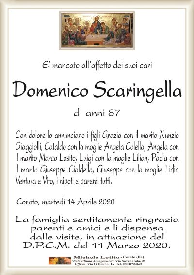 Il rito funebre è stato celebrato il giorno 15 aprile 2020