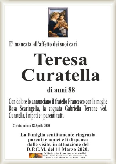 Il rito funebre è stato celebrato il giorno 19 aprile 2020