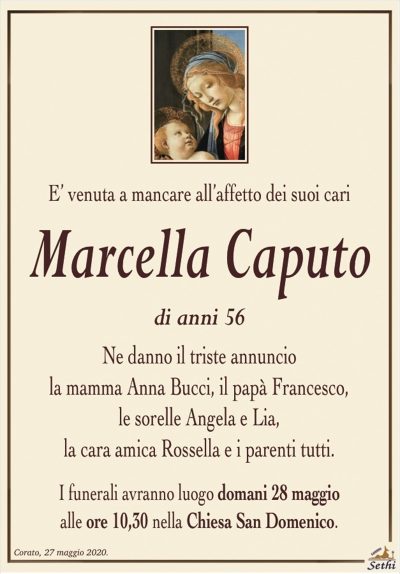 Il rito funebre è stato celebrato il giorno 28 maggio 2020