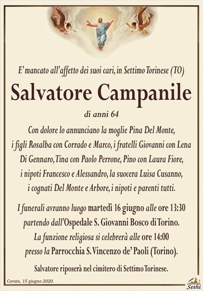 Il rito funebre è stato celebrato il giorno 16 giugno 2020