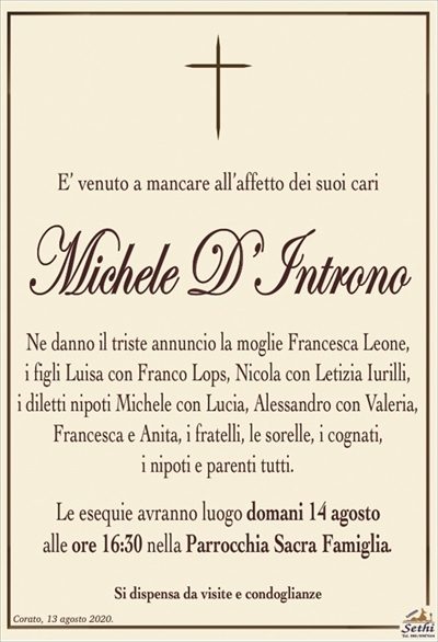 Il rito funebre è stato celebrato il giorno 14 agosto 2020