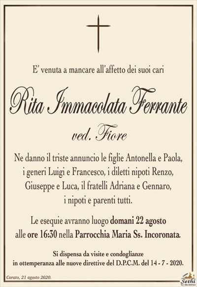 Pubblicazione in evidenza di un manifesto sul portale, posizionato tra i primi 10 annunci subito sotto quello del defunto, garantendo massima visibilità. Incluso anche un manifesto digitale presso la sala d’accoglienza e un manifesto cartaceo presso la chiesa. La posizione online segue l’ordine cronologico di pubblicazione.