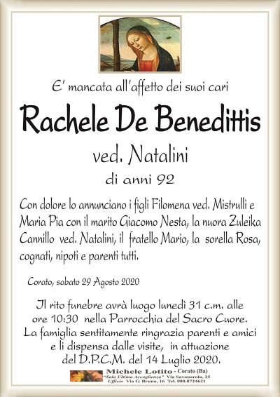 RACHELE DE BENEDITTIS ved. Natalini