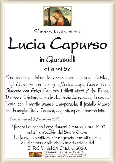 Il rito funebre è stato celebrato il giorno 4 novembre 2020