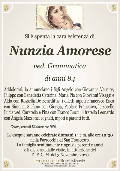 Cara Nunzia, con La Sua Parola, nel Suo Amore sempre ti ricorderemo dando Gloria a Dio