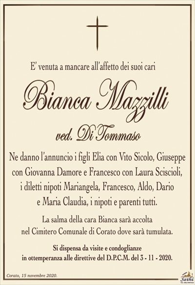 Il rito funebre è stato celebrato il giorno 16 novembre 2020
