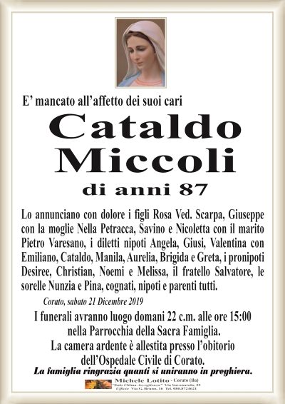 Il rito funebre è stato celebrato il giorno 22 dicembre 2019