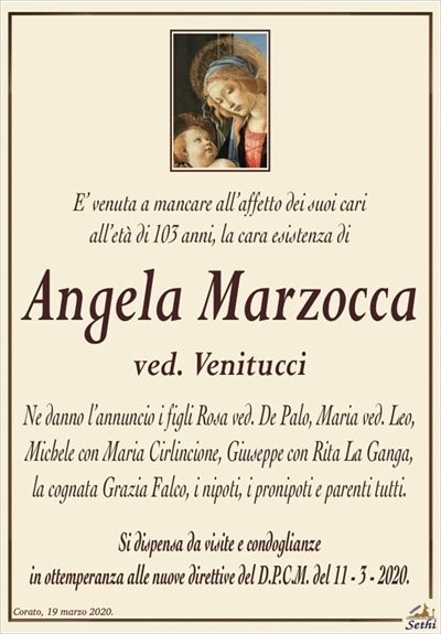 Il rito funebre è stato celebrato il giorno 20 marzo 2020