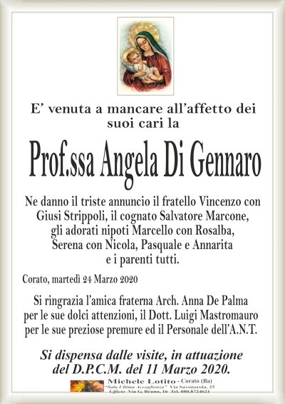 Il rito funebre è stato celebrato il giorno 25 marzo 2020