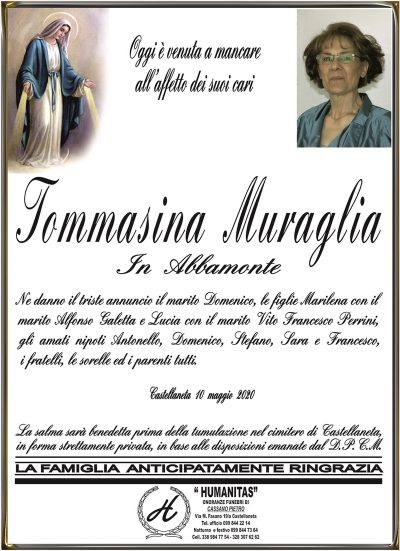 Il rito funebre è stato celebrato il giorno 11 maggio 2020