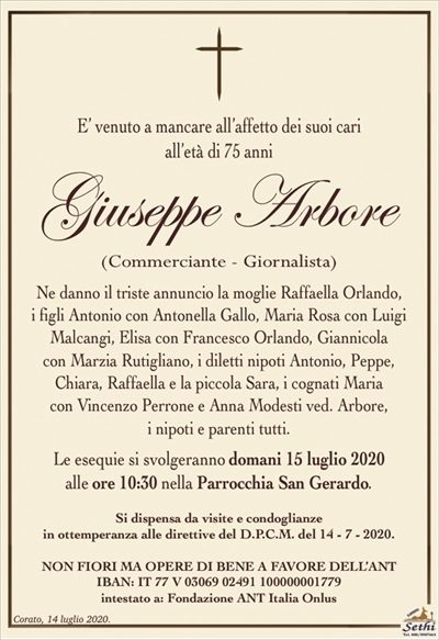 Il rito funebre è stato celebrato il giorno 15 luglio 2020