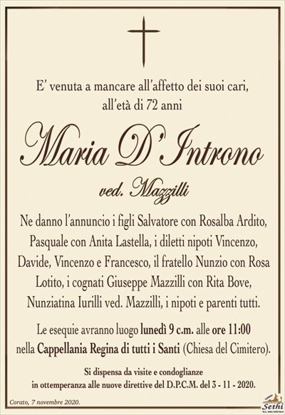 Il rito funebre è stato celebrato il giorno 9 novembre 2020