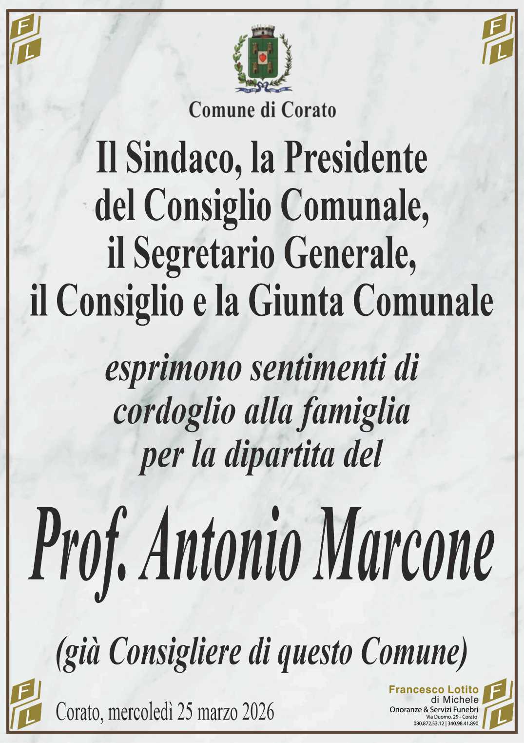 Il rito funebre è stato celebrato il giorno 26 marzo 2026 alle ore 10:00 presso Parrocchia San Domenico - Corato, dove è stato possibile porgere l’ultimo saluto con rispetto e partecipazione.