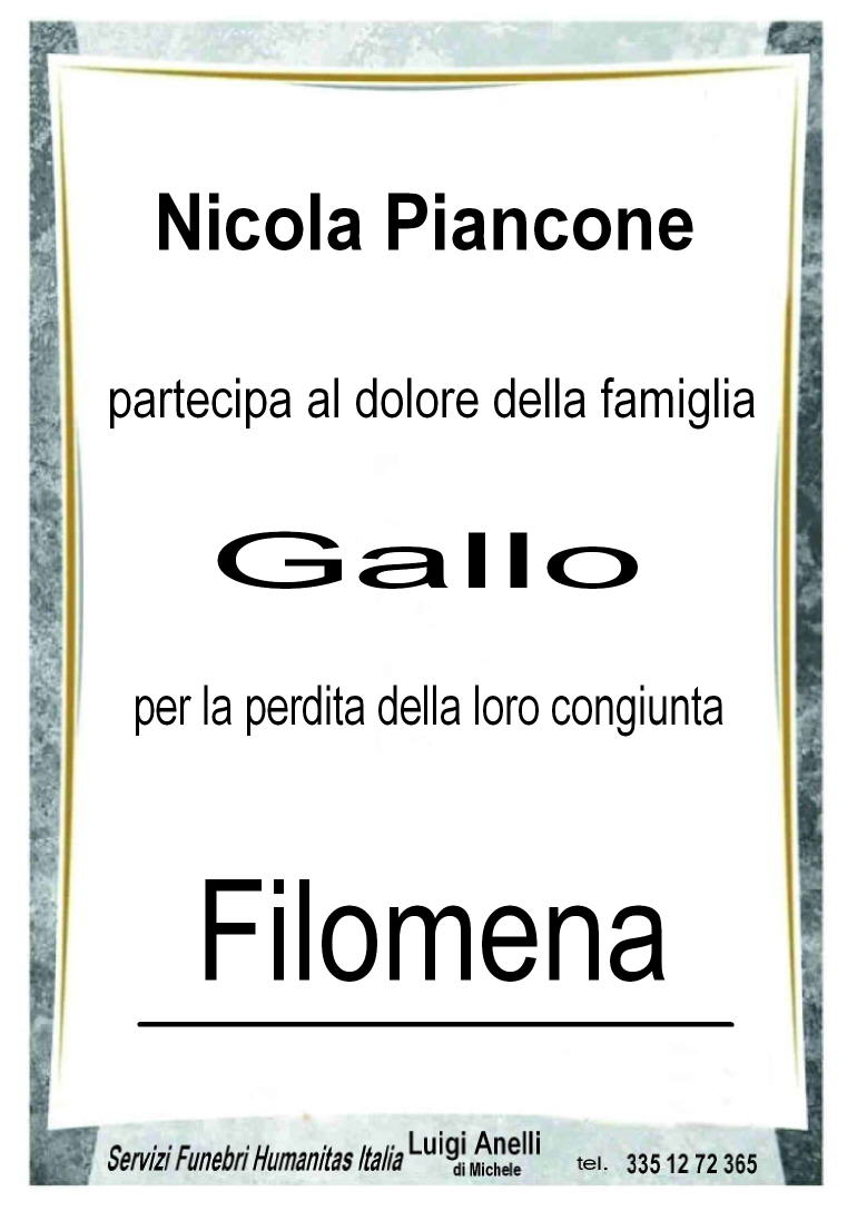 Ne danno il triste annuncio i figli Michele con Adele Perris, Tiziana e Monica, i diletti nipoti Vincenzo, Alessia, Francesca, Alessandro, Michelangelo e i parenti tutti.